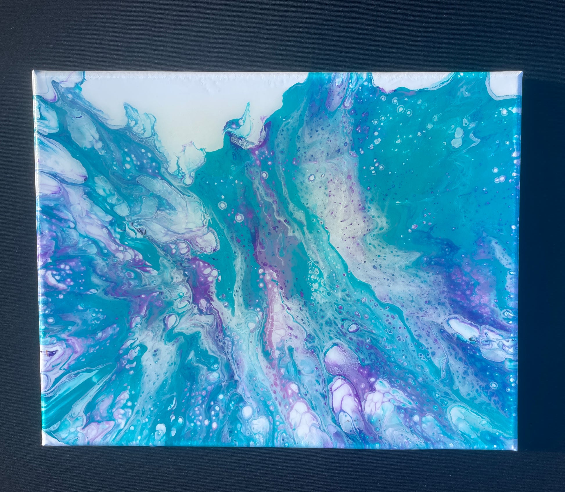 Paper Cup Dreams is inspired by the iconic paper cup designs from the 1990s and evokes a sense of nostaligia and fun. The painting has a glossy texture due to the epoxy finish, which adds an extra layer of protection. Go back in time while still displaying something modern.